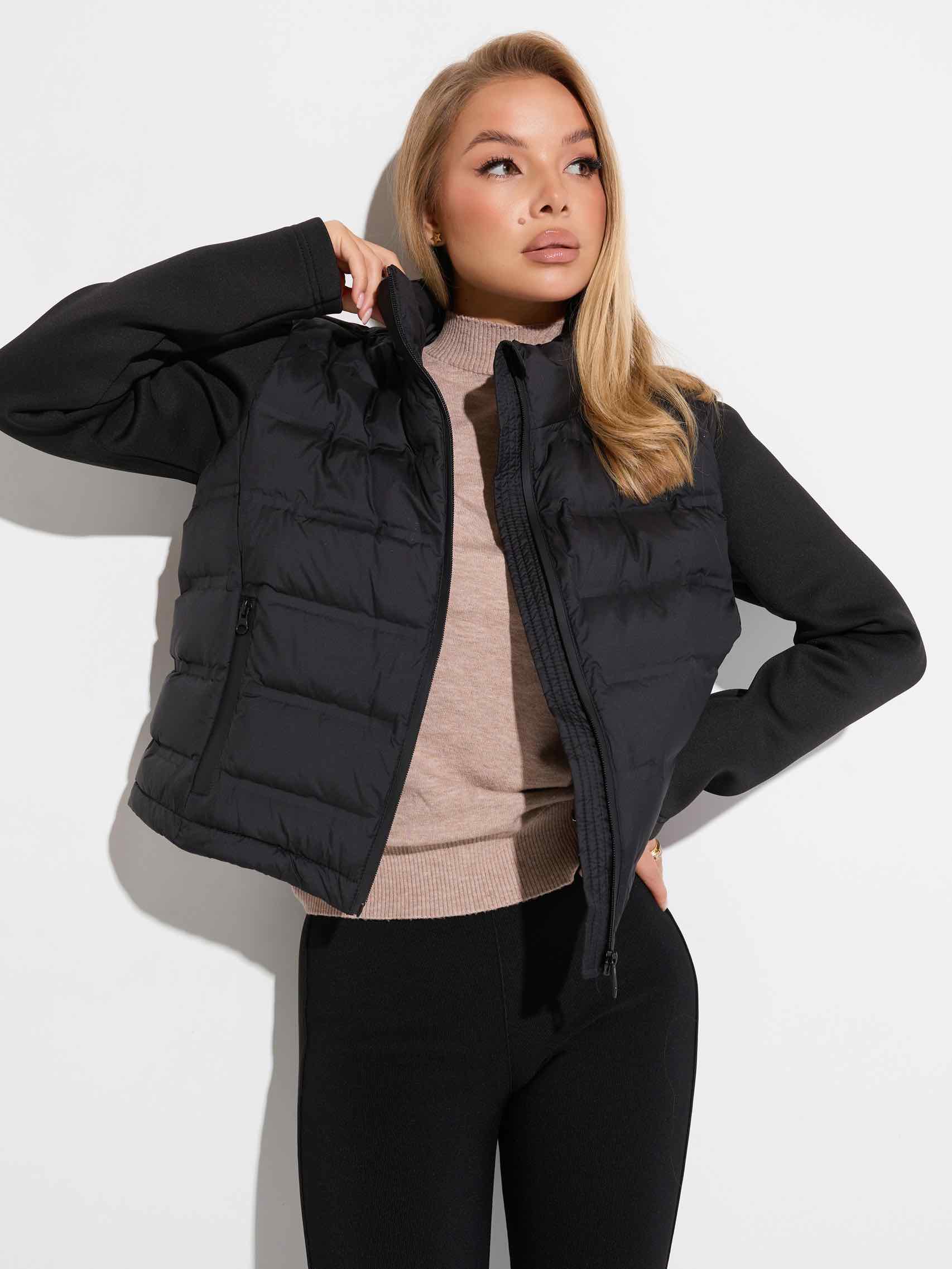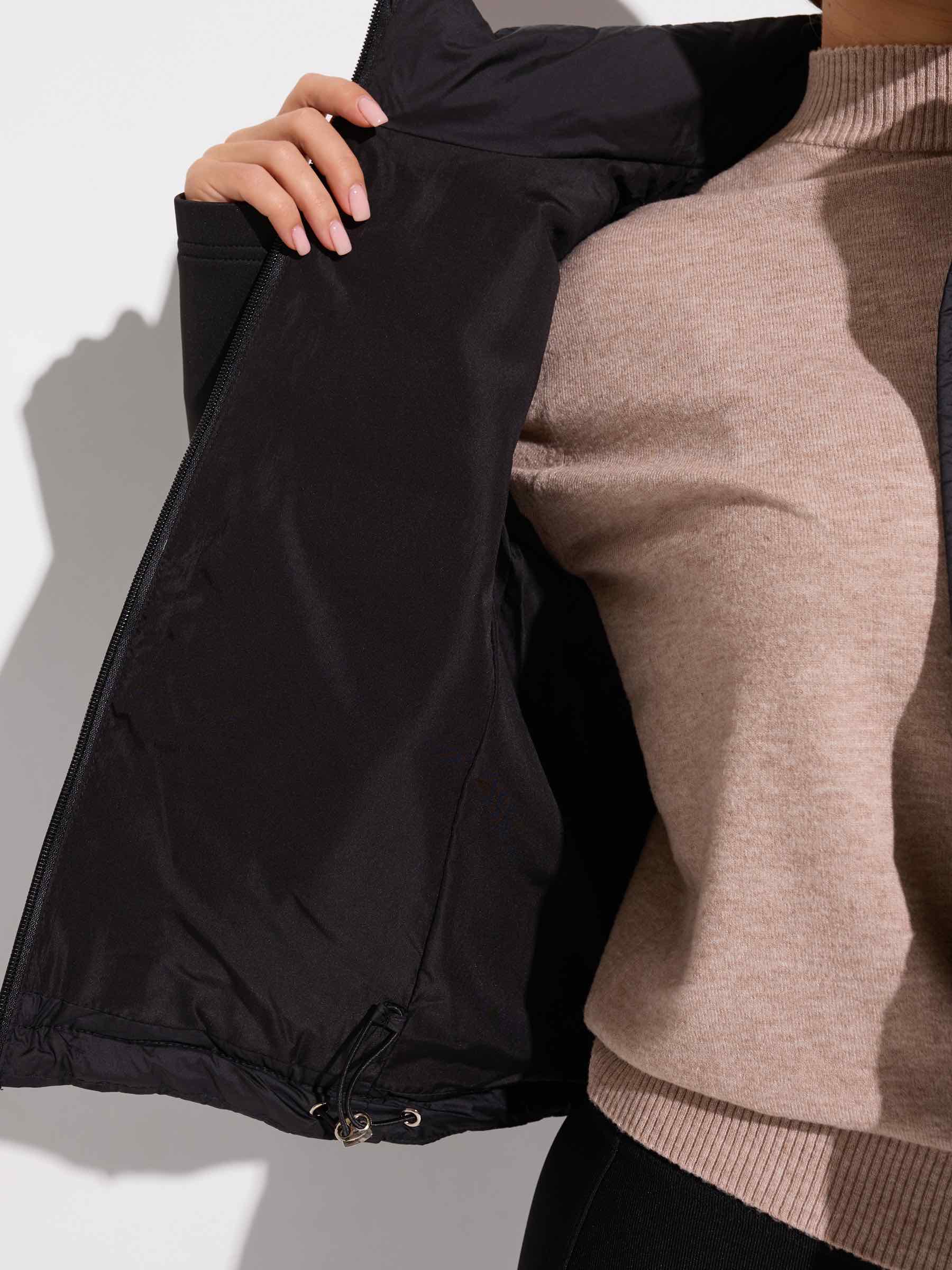 Характеристики демисезонного пуховика с рукавами из неопрена (арт.8866):