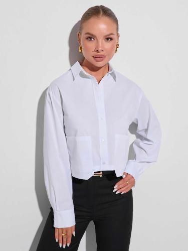 Характеристики женской укороченной рубашки с накладными карманами (арт.23036), белой:
